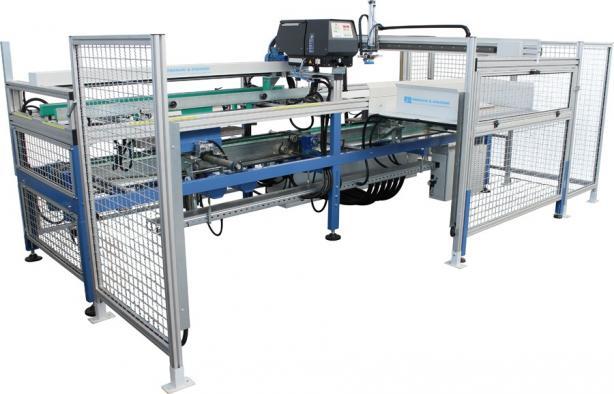The packer is an automatic machine for stacking, compressing and packing tiles.
